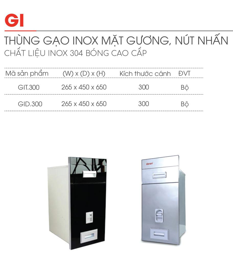 | GIT.300 | 265 x 450 x 650 | 300 | Bộ | 3.200.000 | 1.920.000 |