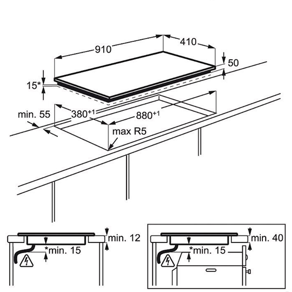 Bếp gồm ba vùng nấu từ có khả năng tự động nhận diện nồi nấu, với tổng công suất là 6.9Kw, giúp nấu ăn nhanh chóng, thuận tiện, tiết kiệm thời gian và điện năng.