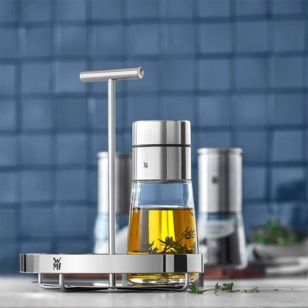 Khi mới xay, các loại thảo mộc và gia vị sẽ phát triển mùi thơm của chúng một cách mạnh mẽ nhất vì tinh dầu được tiết ra. Điều này thật dễ dàng và đáng tin cậy với máy xay gia vị WMF ProfiSelect. Lọ xay nguyên bản cứng hơn thép, không bị mài mòn và ăn mòn, không chỉ xay được muối và hạt tiêu mà còn xay cả các loại thảo mộc và gia vị khô. Nắp bảo vệ mùi thơm nằm chắc chắn và bảo vệ máy xay. Nó vẫn giữ được mùi thơm của gia vị khi bạn xay khi đậy nắp. Bánh xe điều chỉnh bên trong cho phép điều chỉnh vô hạn cường độ mài. Nhờ thiết kế hiện đại và đồng bộ, các hộp đựng cũng tạo ra một hình ảnh đẹp khi gia vị tại bàn. Với liều lượng thanh lịch, bạn có thể thêm giấm và dầu vào bàn ăn một cách sành điệu.