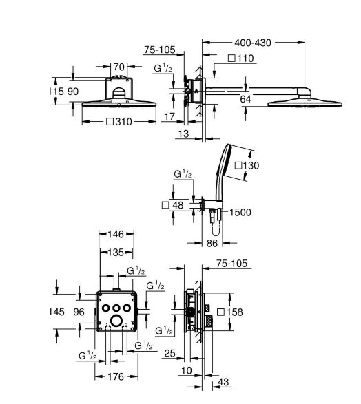 - Lắp đặt: Âm tường (kết hợp thân van Grohe Rapido SmartBox – mã 35600000)