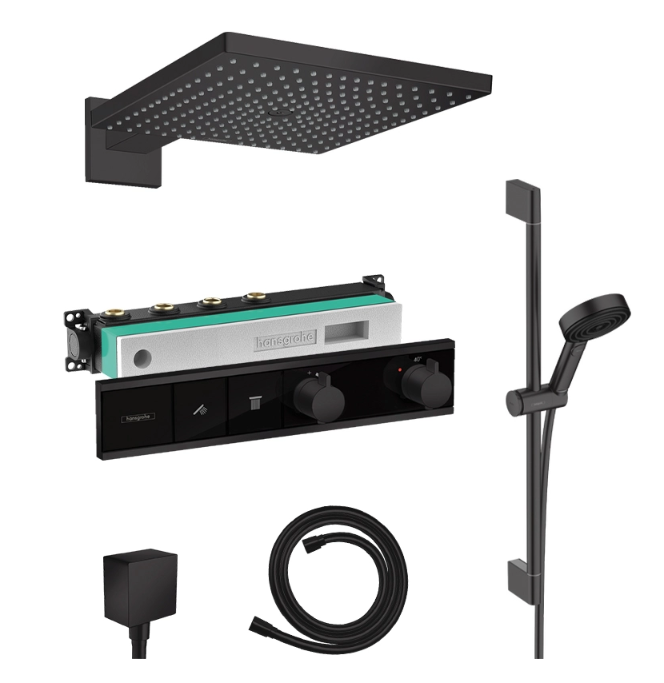 Mang đến không gian phòng tắm đẳng cấp chuẩn spa, bộ sen âm tường Hansgrohe RainSelect Raindance E 300 màu đen là sự kết hợp hoàn hảo giữa thiết kế tối giản, công nghệ tiên tiến và tính năng đa dạng. Bộ sản phẩm bao gồm: