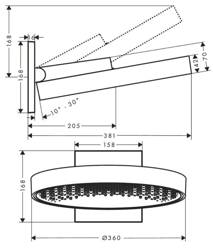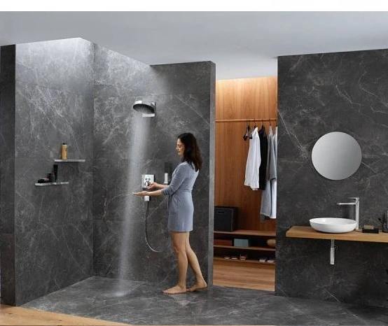 1- Bát sen tắm đứng gắn trên tường Hansgrohe Rainfinity 1jet với tay sen mạ crôm