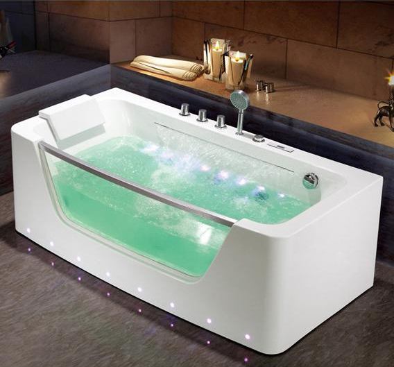 Hệ thống đèn màu trong lòng bồn và bên ngoài mặt yếm mang lại cảm giác thư giãn dưới anh đèn lung linh huyền ảo cùng với sự sang trọng trong phòng tắm nhà bạn.