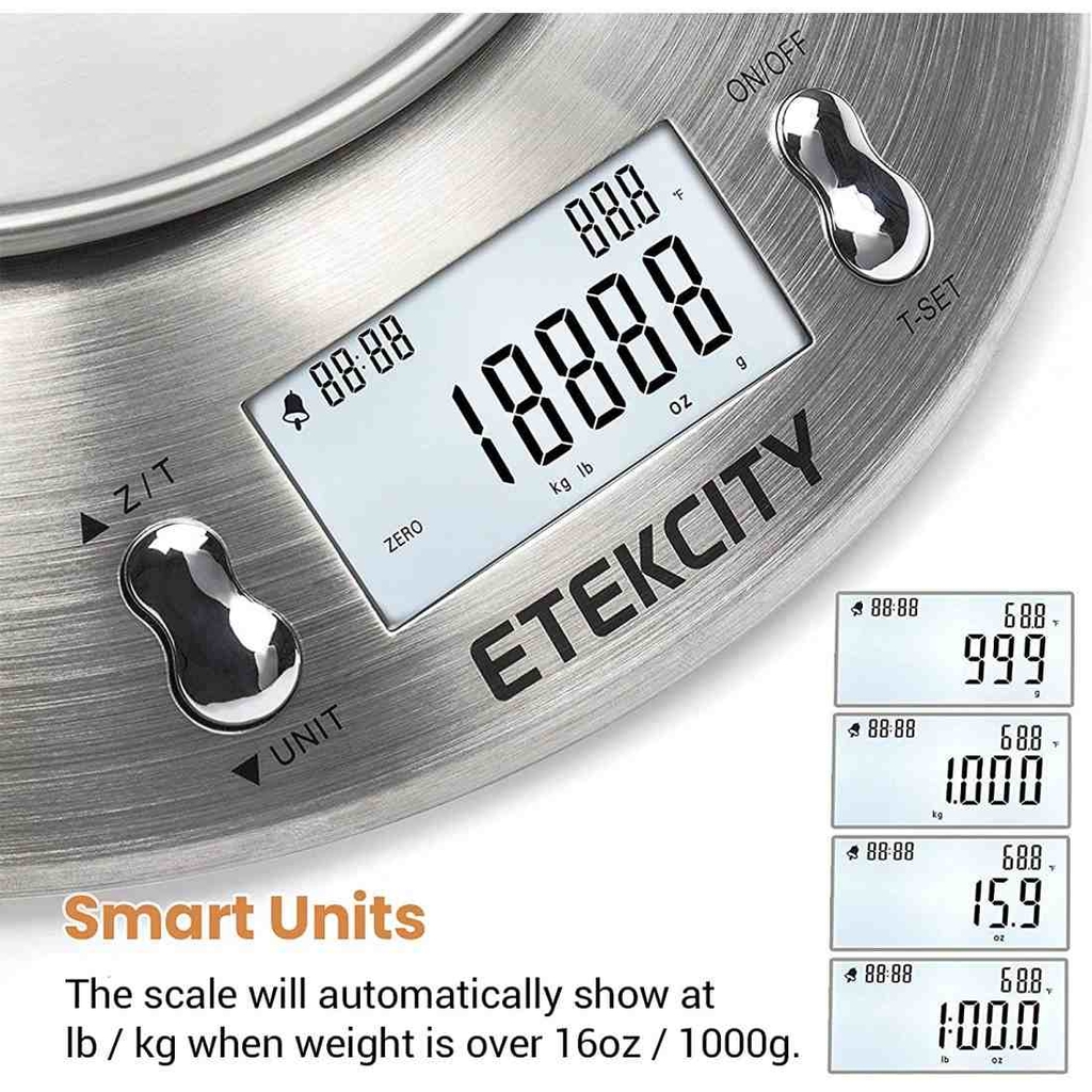 - Cân điện tử mini Etekcity mang lại trải nghiệm nấu bếp tuyệt vời nhờ bộ cảm biến đo lường chính xác cao chỉ với gia số 0,1 oz / 1 g / 0,5 ° F, vì vậy bạn có thể đo với độ chính xác tối đa trọng lượng thực phẩm cần thiết cho việc nấu nướng.
