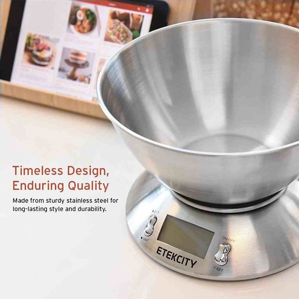 - Cân kỹ thuật số được thiết kế với một cái bát có thể tháo rời bằng thép không gỉ, rất phù hợp để đo các thành phần hỗn hợp và các phép đo bì. Khi không sử dụng, bát có thể được lật ngược và đặt lên trên bộ phận cân để sử dụng như một hộp bảo vệ, giúp bạn dễ dàng cất giữ mà không chiếm quá nhiều diện tích.