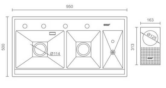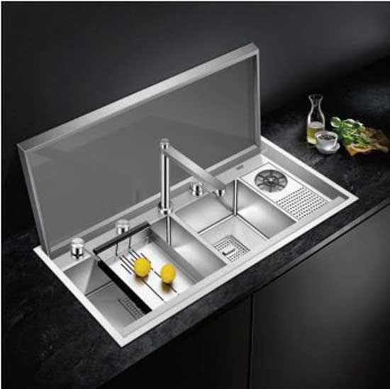 Hệ thống xử lý nước thải tiên tiến từ bộ lọc giỏ thép không gỉ, đếm bộ hệ thống xử lý thoát nước. Đáy chậu có cấu hình thấp giúp giải phóng thêm không gian tủ bếp nhà bạn