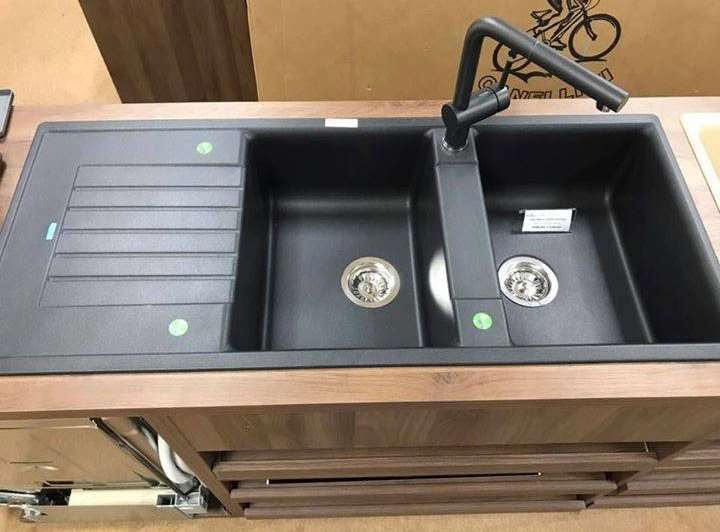 Kiểu dáng chậu 8s 565.76.359 MÀU ĐEN 2 hố 1 bàn chờ