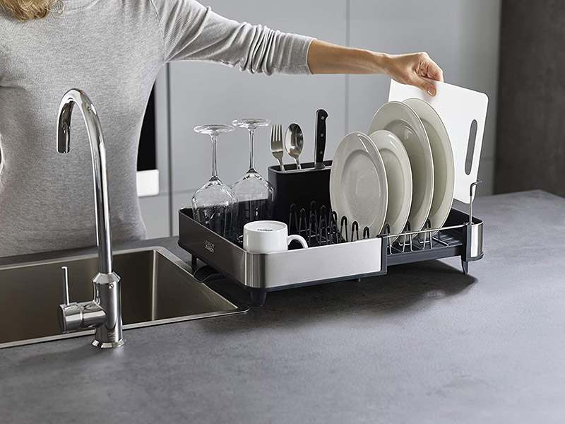 Đầu tiên phải kể đến thiết kế dạng trượt độc đáo của sản phẩm giá đựng Joseph 85189, với khay trượt 2 phần cho phép bạn dễ dàng điều chỉnh kích thước cho phù hợp với không gian làm việc. Các ngạnh bằng thép phủ của nó có các đầu nhọn không trầy xước, trong khi các đường gân trên đế giúp nước thoát ra ngoài dễ dàng.