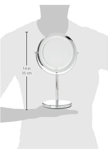 Gương trang điểm 2 trong 1 Medisana CM840 là loại gương để bàn với chân đế chắc chắn hình tròn và giá đỡ có độ cao vừa phải, tiện sử dụng. Một mặt gương cho hình ảnh 1: 1 và mặt kia phóng to lên 5 lần, giúp các chi tiết của làn da trở nên rõ nét, đặc biệt phù hợp cho chị em trang điểm, người già hoặc người viễn thị.