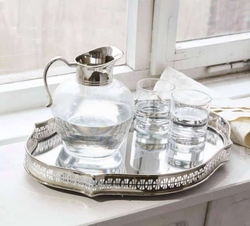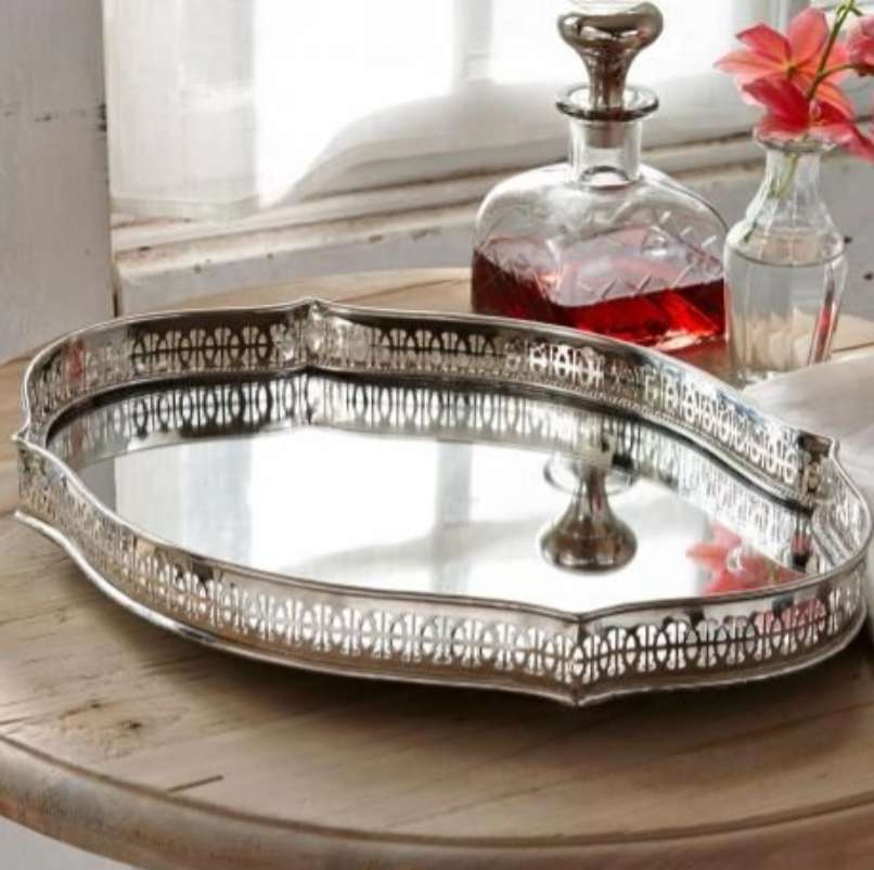 Khay đồng mạ niken sáng bóng này thể hiện theo một cách khác biệt ngoạn mục. Một tấm gương được gắn trên sàn, sẽ tạo ra một cái nhìn hấp dẫn, chẳng hạn như bạn đặt một vài chiếc bình xinh xắn lên đó.
