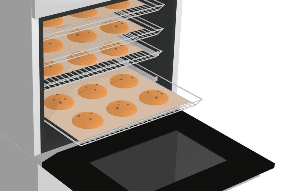 Với công nghệ khí nóng lan tỏa ra theo 4 hướng, được phân bổ đều trong lò nướng sẽ giúp việc tạo được các món ăn với độ chín đồng đều nhất ở tất các vị trí trên khay nướng. Điều này sẽ giúp ích trong việc chế biến nhiều thức ăn trong cùng một lúc mà vẫn đảm bảo được kết quả như mong đợi.