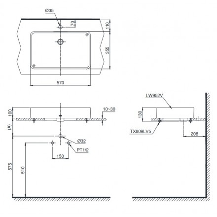 Gợi ý vòi nước kết hợp: Vòi nóng lạnh (đã bao gồm chặn nước và dây cấp): TLS04304V; TLG02307V; TLG04307V; ...- Ống nước thải: TVLF401