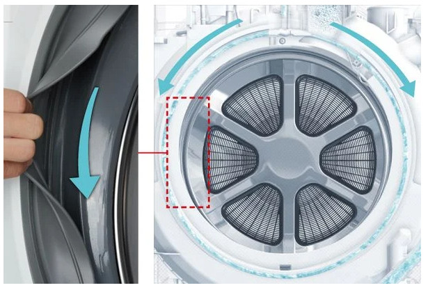 Giặt đẩy với lực ly tâm được tạo ra bởi chuyển động quay tốc độ cao của lồng giặt.