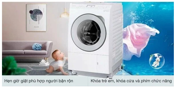 Chức năng này đảm bảo an toàn cho gia đình, bảo vệ trẻ nhỏ tốt hơn. Bởi khi khởi động chức năng khóa trẻ em, máy sẽ khóa bảng điều khiển và cửa máy lại để khi trẻ có chơi đùa quanh thiết bị, chạm vào bàn phím cũng không gây nguy hiểm cho chúng.