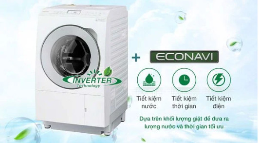 AI ECONAVI sử dụng chức năng cảm biến giúp nhận biết, đánh giá số lượng quần áo cùng chất liệu quần áo để kiểm tra độ ẩm và nhiệt độ nước. Từ đó sẽ tự động rút ngắn thời gian cho phù hợp để tiết kiệm điện và nước.