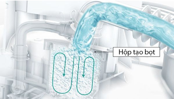 Ngoài ra, trong quá trình phun bọt vào lồng giặt, máy cũng sẽ loại bỏ xơ vải bám bên trong gioăng cửa, giúp việc vệ sinh trở nên đơn giản hơn.
