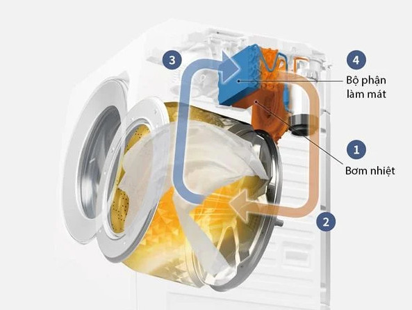 Hút ẩm từ quần áo và đưa đến bộ phận bơm nhiệt.