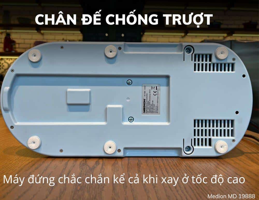 Trong quá trình vận hành nấu sữa hạt với mức công suất mạnh mẽ lên đến 1200W, quý khách hàng sẽ băn khoăn về sự ổn định của máy. Tuy nhiên với trang bị chân đế chắc chắn chống trượt, Medion MD 19888 vận hành êm ái và trơn tru trong suốt quá trình