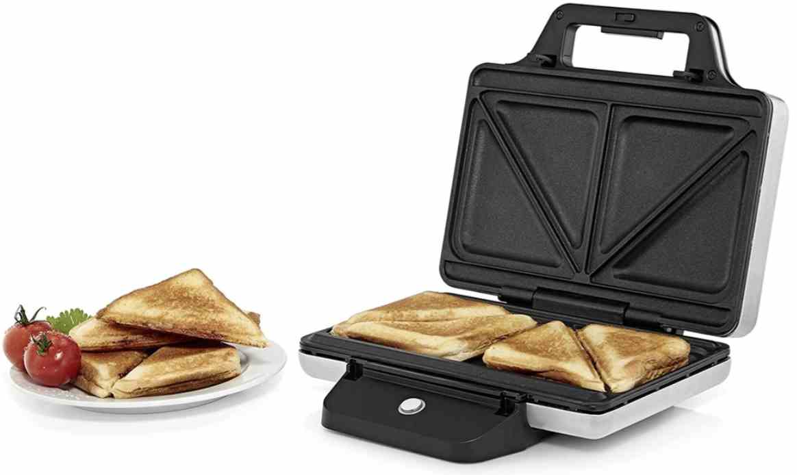 Trong máy nướng bánh mì sandwich có không gian cho hai bánh sandwich hay bánh kẹp ở bất kỳ kích thước nào từ các lát bánh mì nướng tiêu chuẩn đến size lớn XXL (tối đa 13 x 13 cm).
