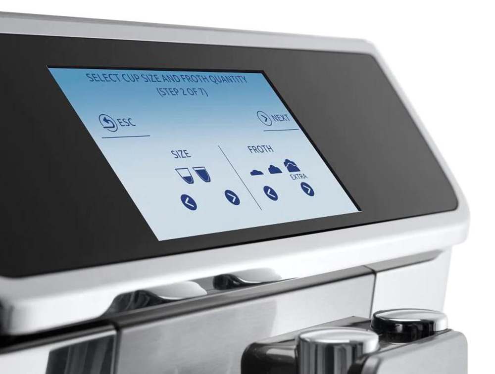 - Cùng khám phá giao diện và chức năng trực quan của màn hình cảm ứng màu 4,3” mới với máy pha cà phê hạt Delonghi Ecam650.85.MS. Màn hình đơn giản, dễ tương tác cho phép bạn truy cập trực tiếp tất cả đồ uống yêu thích, từ espresso đến latte macchiato, đều có thể điều chỉnh, cá nhân hóa và lưu công thức từng loại với tối đa 6 hồ sơ cá nhân cho mỗi loại thức uống để tránh phải thực hiện cùng một quy trình mỗi lần, tiết kiệm thời gian cho bạn. Chỉ với một cú chạm đơn giản.