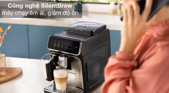 Hãng Philips được cấp bằng sáng chế cho SilentBrew, công nghệ tiên tiến giúp giảm thiểu tiếng ồn phát ra từ máy pha cafe nhờ hiệu quả mài êm và cách âm, máy chạy êm hơn đến 40% so với những sản phẩm trước đó và đạt chứng nhận Quiet Mark uy tín. Người dùng không còn lo lắng khi sử dụng máy pha cà phê tự động Philips EP3321/40 Series 3300 sẽ gây ảnh hưởng đến thời gian sinh hoạt, nghỉ ngơi của mọi người.