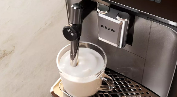 Trên máy pha cà phê tự động Philips EP3321/40 Series 3300 được tích hợp vòi đánh bọt sữa bổ sung hơi nước giúp làm cho sữa bông mịn mượt để bạn pha chế Cappuccino, Latte Macchiato với lớp kem sữa béo thơm dễ dàng, không tốn nhiều sức lực.