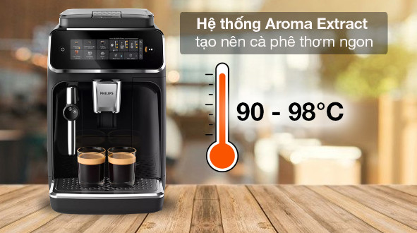 Công nghệ Aroma Extract giúp mang đến sự cân bằng tối ưu giữa chiết xuất hương thơm và nhiệt độ pha thông qua cách duy trì nhiệt độ nước từ 90 – 98°C để tạo nên tách cà phê chất lượng vào mọi thời điểm bạn muốn thưởng thức.