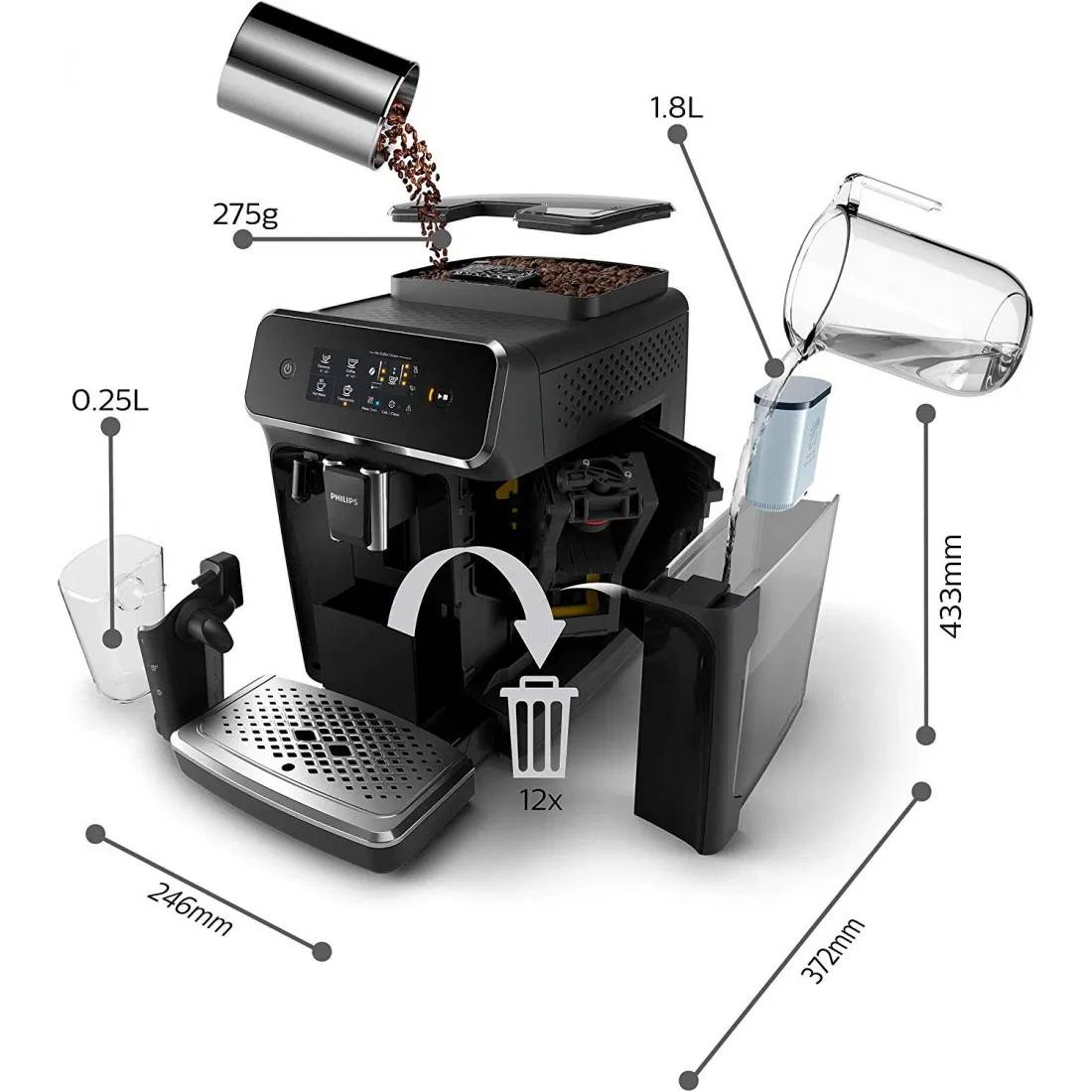 Chiếc Máy pha Cafe tự động Philips EP2231/40 được xem như là máy pha cà phê cappuccino vậy. Chỉ với 1 nút bấm đơn giả là bạn có thể thưởng thức được một ly cafe cappuccino béo nguậy hay một ly espresso mạnh mẽ. Tất cả đồ uống mà bạn yêu thích sẽ chỉ có trong 1 nút bấm.