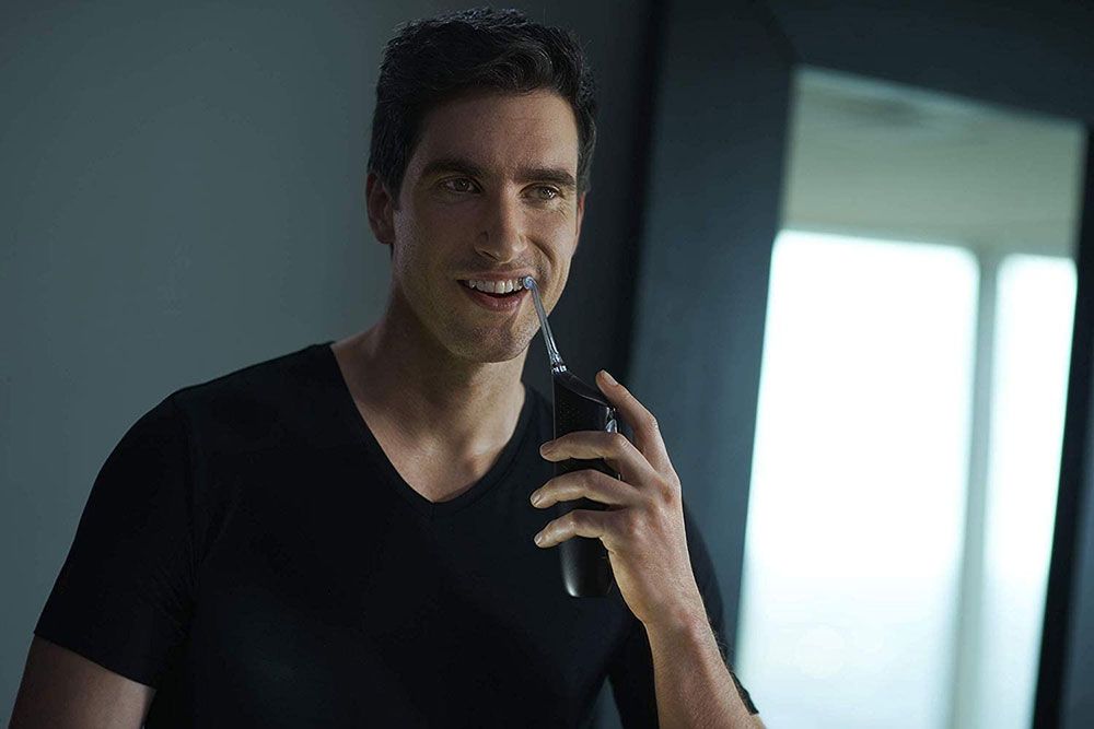 Máy Tăm Nước Philips Sonicare AirFloss Ultra HX8431/03 Màu Đen là giải pháp cho bệnh nhân răng miệng không xỉa răng thường xuyên. Nghiên cứu lâm sàng cho thấy sau 3 tháng sử dụng, 96% người tham gia nghiên cứu, tiếp tục sử dụng AirFloss 4 ngày hoặc nhiều hơn trong một tuần. Máy tăm hơi nước Philips có tính năng công nghệ phun cực nhỏ, mang những giọt cực nhỏ hỗn hợp không khí và nước để loại bỏ mảng bám sinh học giữa các răng và tuyệt đối an toàn đối với răng và nướu. AirFloss sẽ giúp người sử dụng làm sạch toàn bộ răng trong vòng 30 giây. Airfloss đạt các tiêu chuẩn về hiệu xuất và an toàn của Philips Sonicare. AirFloss vừa dễ sử dụng vừa làm sạch và tươi mát răng miệng với công nghệ phun sương cực nhỏ.