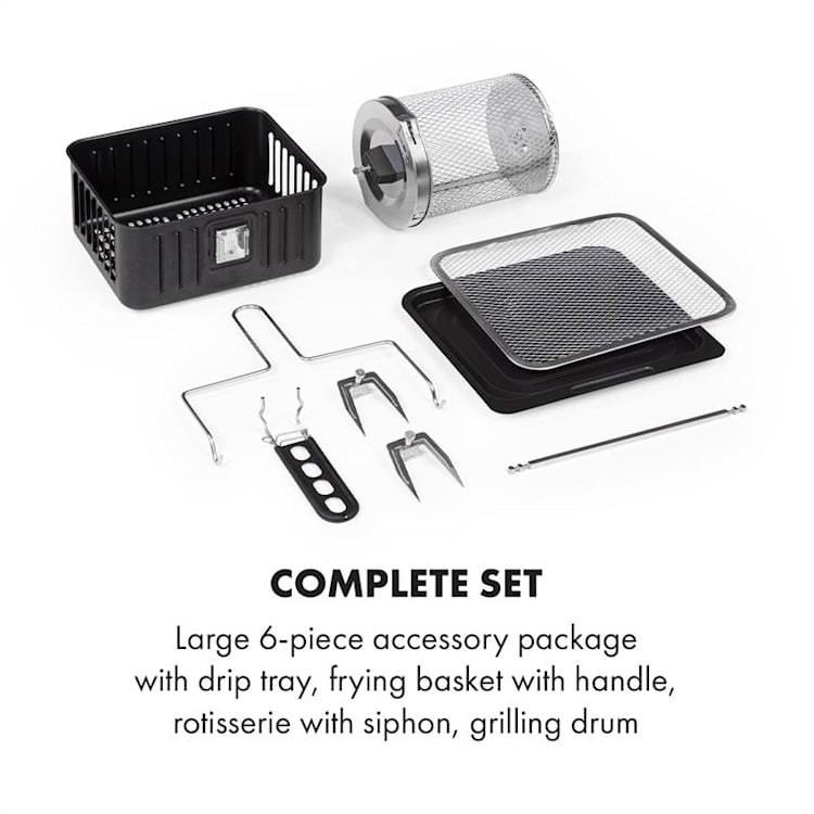 Ngoài ra nồi còn đi kèm với bộ phụ kiện đầy đủ giúp người dùng có thể làm được mọi món ăn như mong muốn. Các loại thực phẩm từ thịt, cá, gà, tôm, cua, hải sản, làm bánh… thậm chí là nguyên con gà trên 2kg nhờ công suất khủng, ứng dụng công nghệ ưu việt của Đức giúp thức ăn chín đều từ trong ra ngoài và giữ lại được hàm lượng dinh dưỡng cao.
