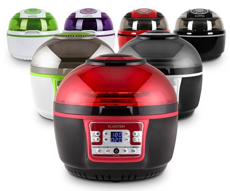 Chiên nướng không cần dầu với Nồi chiên không dầu Klarstein Turbo 9 Lít làm đủ món: gà nướng nguyên con, khoai tây chiên, sườn, thịt, hải sản. Giúp bữa ăn thêm ngon miệng, đảm bảo sức khỏe gia đình và làm sang trọng thêm căn bếp nhà bạn