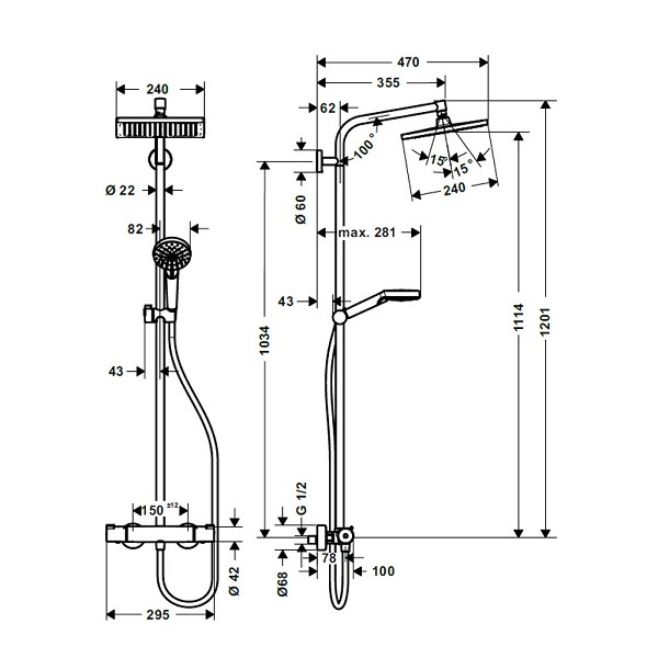 Vòi sen trên cao (240 x 240 mm), vòi sen tay (đường kính 100 mm)