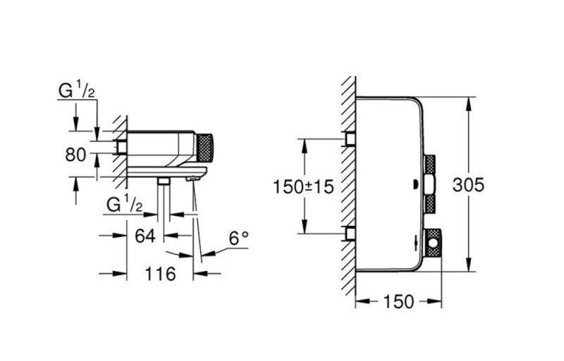 Bản vẽ kỹ thuật bộ trộn sen bồn tắm Grohe Grohtherm 34718000 nóng lạnh