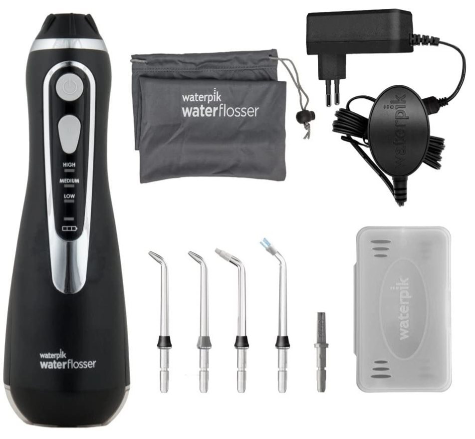 Bình đựng nước được thiết kế để dễ dàng được đổ đầy nước. Dung tích bình chứa lớn đủ nước để sử dụng liên tục trong vòng 45 giây. Theo máy có 4 đầu tăm khác nhau phù hợp cho nhiều mục đích sử dụng. Dụng cụ này là tối cần thiết cho những người đang niềng răng.
