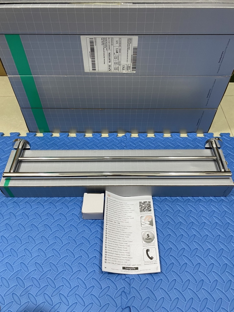 Thanh treo vắt khăn Hansgrohe 41712000 được làm bằng chất liệu đồng mạ Cr/Ni siêu bền đạt thẩm mỹ cao trong thiết kế các phòng tắm sang trọng, Hansgrohe 41712000 có kích thước nhỏ gọn phù hợp với tất cả các phòng tắm lớn nhỏ của mọi nhà.