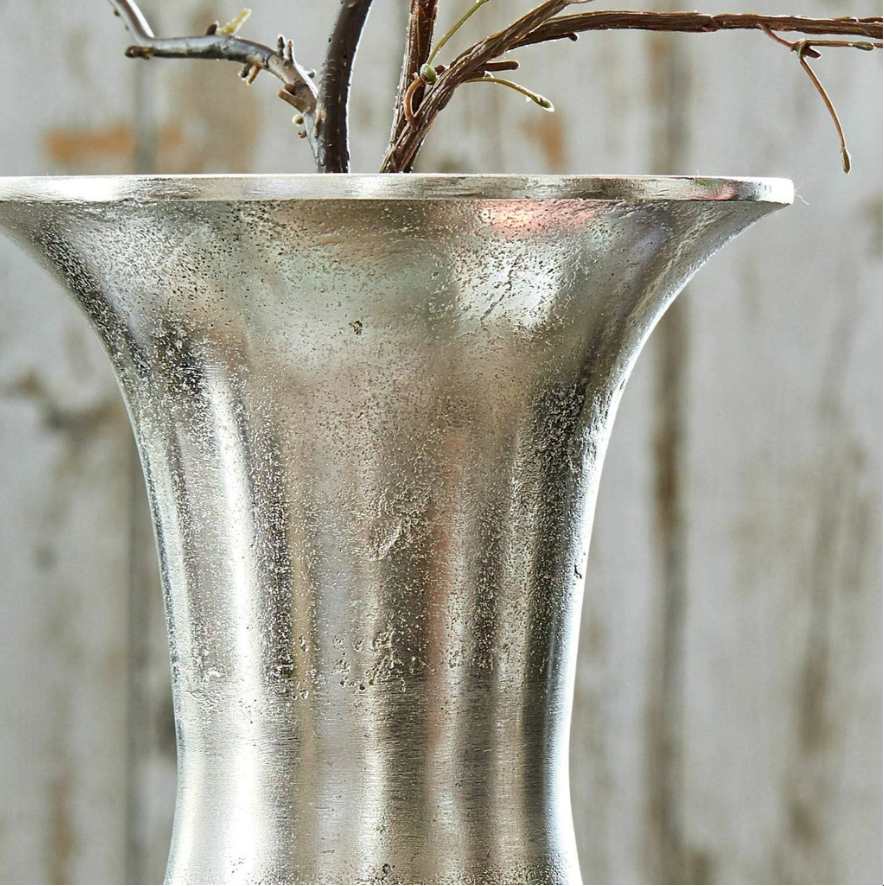 Chiếc bình thật duyên dáng và lộng lẫy - gần giống như chiếc cúp của người chiến thắng. Được sản xuất bằng quy trình nhôm đúc và được tinh chế bằng bạc cổ, đồng thời mang vẻ cổ điển và hiện đại.