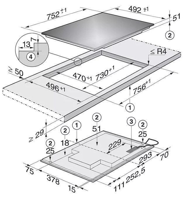 4 vùng nấu bao gồm 1 vùng PowerFlex và 1 vùng TempControl