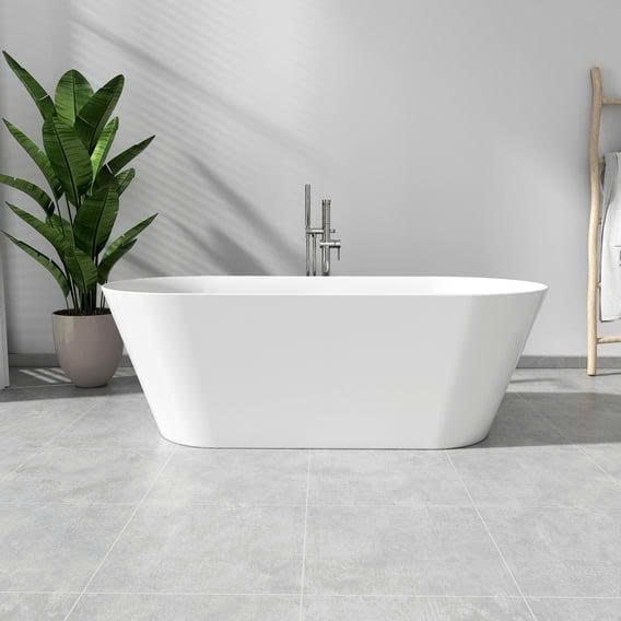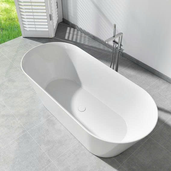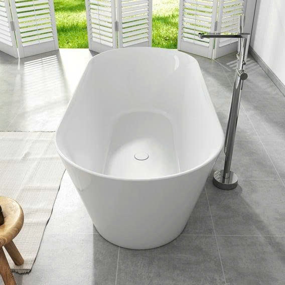 Thiết kế freestanding sang trọng: Dáng bồn hình oval thanh lịch, bề mặt trắng mịn, có thể đặt giữa không gian phòng tắm như một điểm nhấn nghệ thuật.