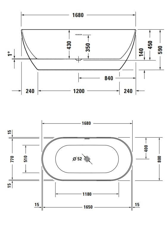 Bồn tắm đứng nhập khẩu Đức DURAVIT DuraKanto 168x80cm màu trắng | 700561000000000
