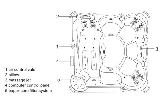 Bồn tắm massage Govern SPA-002 được thiết kế dành cho tối đa 4 người sử dụng.