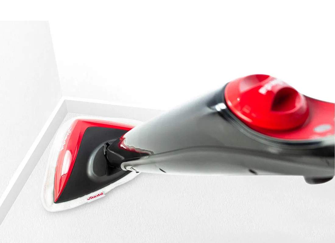 - Máy lau nhà hơi nước Vileda rất dễ di chuyển, nhỏ gọn, nhẹ và đi kèm với một đầu lau có thể xoay. Nó có kích thước 126 cm và nặng 2,3 kg. Tay cầm được thiết kế tiện lợi, giúp cây lau nhà bằng hơi nước thoải mái và dễ dàng cầm nắm. Nhờ các tấm lau bằng sợi nhỏ, máy lau hơi nước này lý tưởng cho sàn gỗ cứng. Ngoài ra, khi bạn thêm tấm trượt thảm tiện dụng vào đế, nó cũng có thể được sử dụng để làm mới thảm, thảm, vải bọc và nệm.