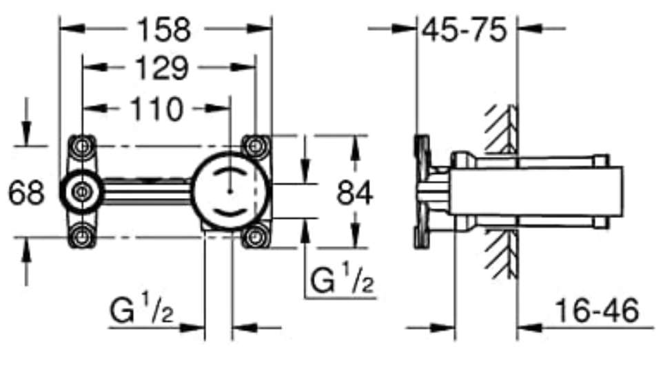 Bộ trộn âm Grohe 23571000 được thiết kế gắn tường tiết kiệm không gian thích hợp cho