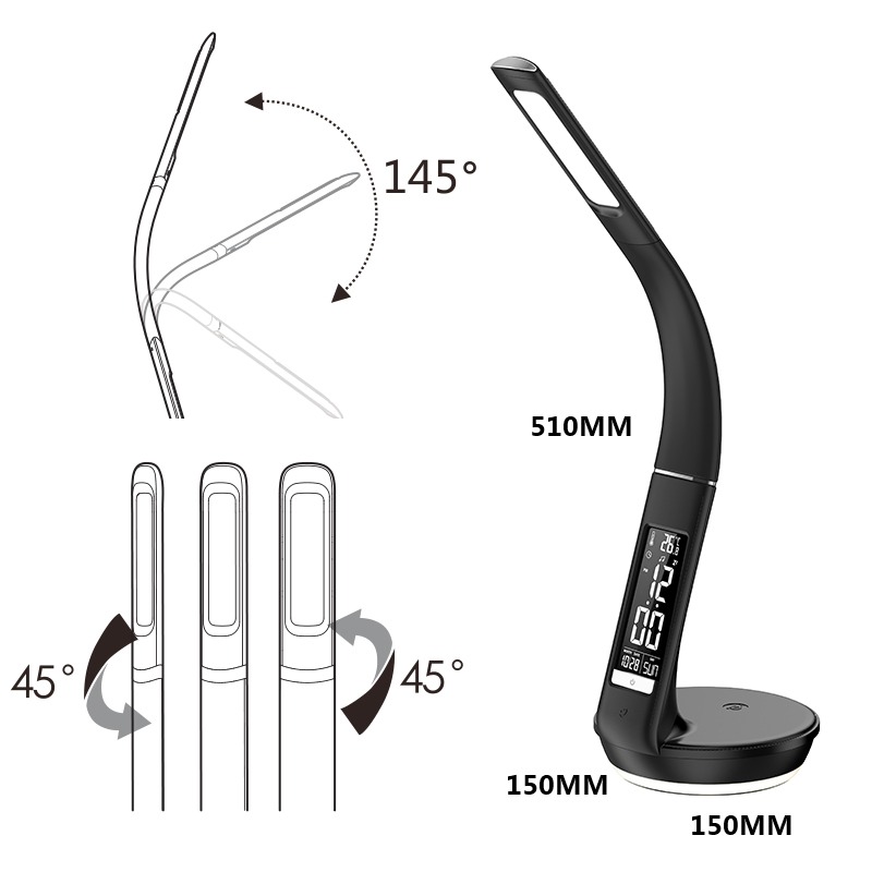 Thiết kế cổ ngỗng linh hoạt, thông minh: tích hợp màn hình kĩ thuật số độ nét cao VA để điều chỉnh độ sáng, thân đèn có thể gập xoay theo ý muốn.