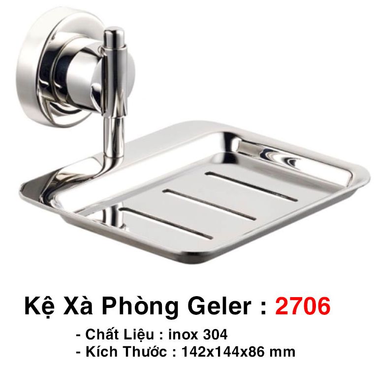 Kệ Xà Phòng Geler 2706 là sản phẩm dùng để đựng xà phòng,xà bông trong phòng vệ sinh .Được sản xuất trên dây chuyền hiện đại và có tuổi thọ cao.
