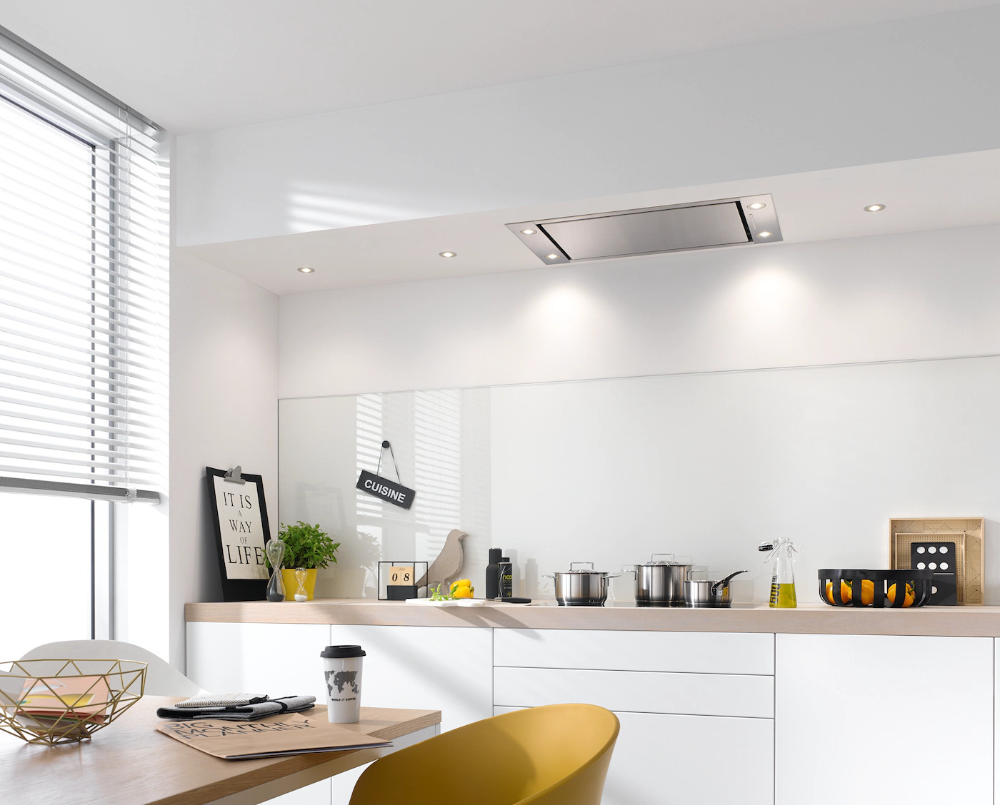Hút mùi âm trần Miele DA 2808 EDST với hệ thống chiếu sáng LED tiết kiệm năng lượng và công tắc cảm ứng ánh sáng để sử dụng dễ dàng.