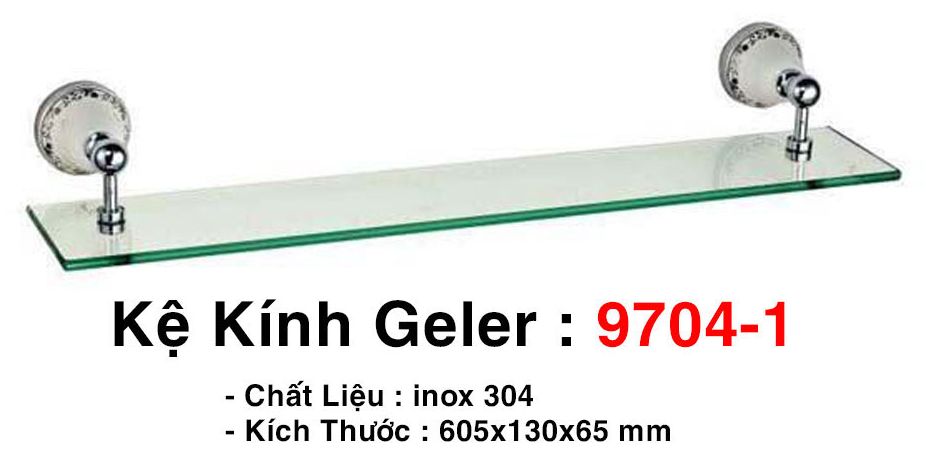 Kệ Kính inox Geler 9704-1 Chịu được môi trường nước biển.Chịu được lực lớn, khó bị móp méo, gãy. Chế độ bảo hành sản phẩm tốt nhất cho khách hàng: đổi mới sản phẩm trong vòng 10 năm.