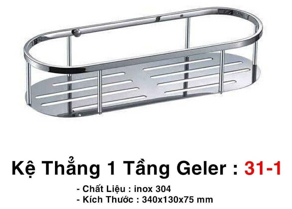 - Sở hữu thiết kế đơn giản, hiện đại và tinh tế, kệ thẳng Geler 31-1 dễ kết hợp với các phụ kiện và thiết bị khác trong phòng tắm.