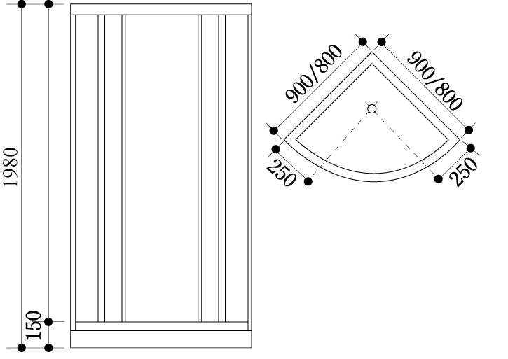 • Sản phẩm hình góc lắp áp tường, có cửa lùa 2 cánh.