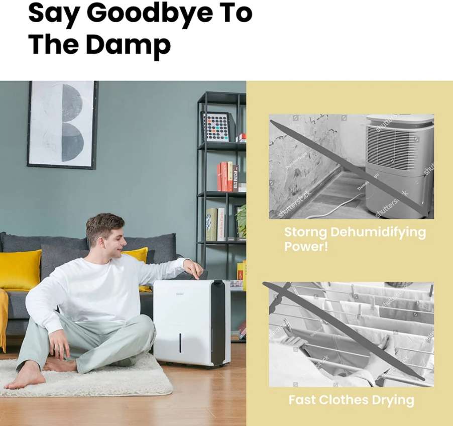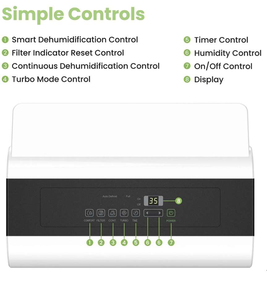 - Chống ẩm mạnh mẽ! Máy hút ẩm Comfee 30 lít tránh được các vấn đề về ngưng tụ, ẩm mốc hoặc mùi mốc. Việc sử dụng máy hút ẩm không khí comfee đặc biệt đáng giá trong phòng tắm, tầng hầm, nhà bếp hoặc các phòng thông gió kém.