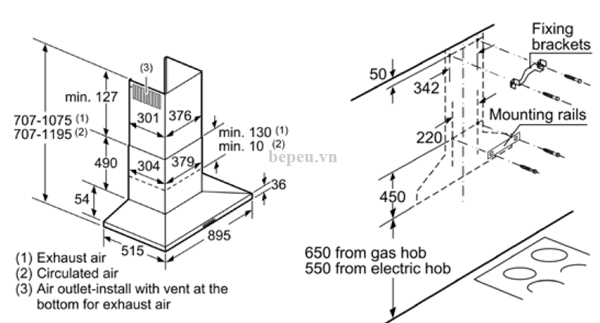 Chế độ hút Đẩy ra ngoài hoặc khử mùi bằng than hoạt tính